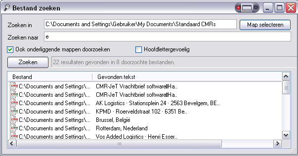 - Te doorzoeken map: De map waarin gezocht zal worden naar .cmr bestanden.